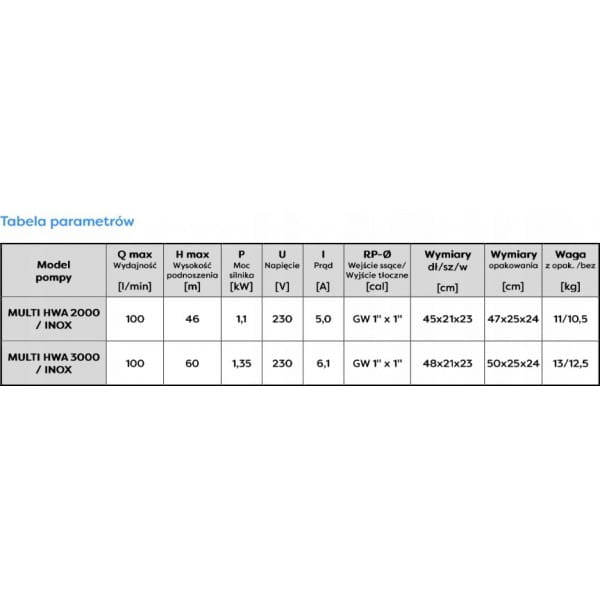 ZASTOSOWANIE: Nawierzchniowe pompy wielostopniowe Multi HWA, Multi 1100 i 1300 Inox przeznaczone są do zaopatrywania w wodę domów jedno i wielorodzinnych, gospodarstw rolnych. Znajdują również zastosowanie na działkach, w ogrodnictwie. Pompy te są pompami samozasysającymi które przeznaczone są do pompowania czystej, zimnej wody
