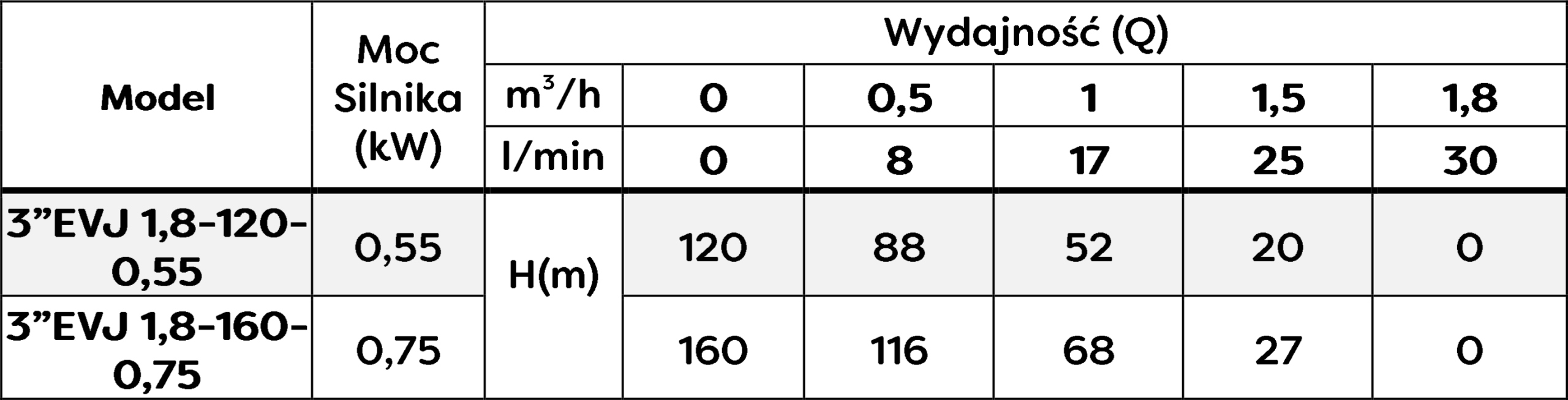 Pompy głębinowe 3”EVJ o śrubowej budowie części hydraulicznej, przeznaczone są do tłoczenia czystej, zimnej, słodkiej wody z odwiertów głębinowych oraz innych zbiorników. Pompy 3”EVJ przeznaczone są do zastosowań wszędzie tam gdzie ich parametry hydrauliczne i techniczne są właściwe i zgodne z oczekiwaniami użytkownika.