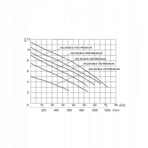 Pompy WQ 80 BOA to seria niezatykających się nieblokujących pomp zatapialnych do pompowania gęstego medium zawierającego duże frakcje zanieczyszczeń stałych pochodzenia organicznego. Konstrukcja wirnika pozwala na przepuszczenie przez komorę wirnikową zanieczyszczeń stałych o średnicy niemalże równiej średnicy wlotu ssącego do pompy.