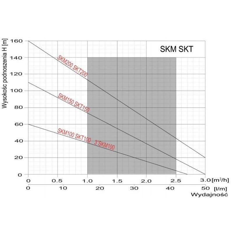 ZASTOSOWANIE: Pompy serii SKM i SKT to monoblokowe pompy głębinowe, gdzie hydraulika pompy zintegrowana jest bezpośrednio z silnikiem. Zależnie od parametrów hydraulicznych występują, jako jednostopniowe lub wielostopniowe z wirnikami peryferalnymi. Ich cechą charakterystyczną jest to, że osiągają relatywnie dużą wysokość podnoszenia (ciśnienie). Uzwojenie silnika od wewnątrz chłodzone jest ekologicznym olejem.