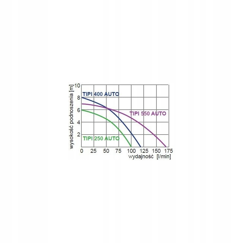 Pompa TIPI 250AUTO jest pompą zatapialną przeznaczoną do pompowania czystej, zimnej wody, oraz wody szarej zawierającej zanieczyszczenia organiczne o maksymalnej średnicy nie przekraczającej 5mm. Pompa TIPI 250AUTO zamiast tradycyjnego sterowania pływakowego posiada wbudowany pływak, który umożliwia zastosowanie jej w wąskich otworach studziennych i rewizjach. Sterowanie pracą pompy odbywa się poprzez suwak na korpusie którym ustala się poziom załączania urządzenia. W trybie auto pompa uruchamia się, gdy poziom cieczy osiągnie wysokość zaznaczoną suwakiem. TIPI 250 dzięki specjalnemu rozwiązaniu komory hydraulicznej wypompowuje wodę prawie do dna podłoża na którym jest postawiona. Jest to cecha cenna wszędzie tam, gdzie w zalanej powierzchni brak jest studzienki rewizyjnej.