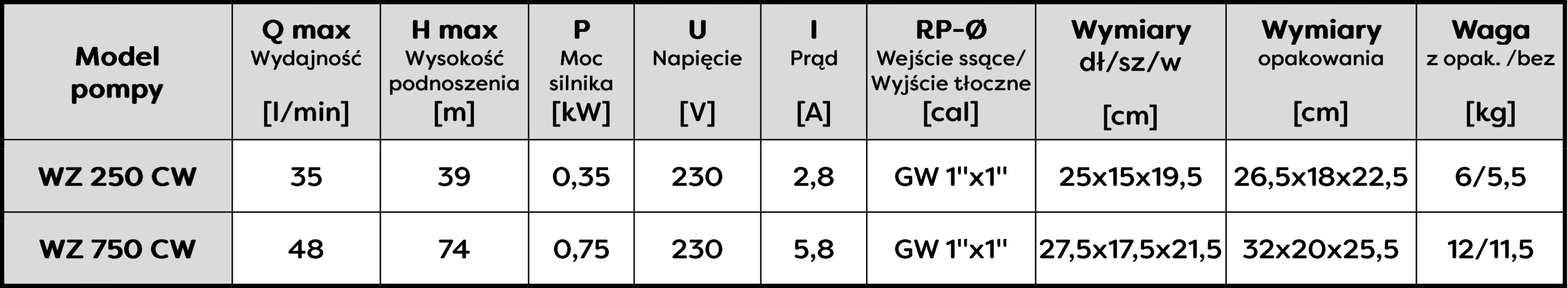 Pompa hydroforowa WZ CW przeznaczona jest do pompowania czystej, słodkiej, zimnej lub gorącej wody. Pompa hydroforowa WZ CW może służyć do dostarczania pod ciśnieniem wody z ujęć studziennych lub innych źródeł zarówno do budynków mieszkalnych, jak i obiektów gospodarczych, działkowych. Znakomicie spełni swoją rolę przy nawadnianiu np. do podnoszenia ciśnienia lub jako element układu solarnego.