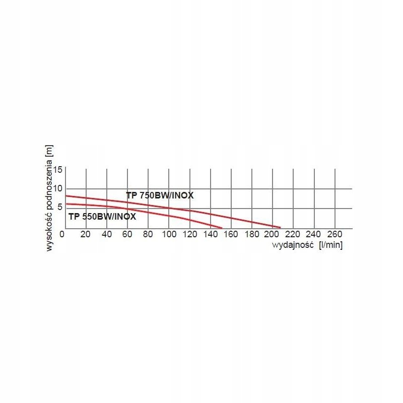 Pompa TP 550 BW/INOX przeznaczona jest do pompowania czystej i zabrudzonej, zimnej wody ze studni kręgowych i zbiorników oraz wody szarej zawierającej zanieczyszczenia organiczne o maksymalnej średnicy nie przekraczającej 35mm. Często znajduje zastosowanie do wypompowywania wody z zalanych pomieszczeń. Pompa posiada sterowanie pływakowe które w zależności od poziomu pompowanej cieczy steruje jej załączaniem i chroni przed pracą na sucho. TP 550BW/INOX charakteryzują się wysokim standardem wykończenia. Wirnik ma zwiększona odporność na ścieranie a obudowa pompy przez cały okres eksploatacji zachowuje wysoki poziom estetyczny bez jakiejkolwiek konserwacji.