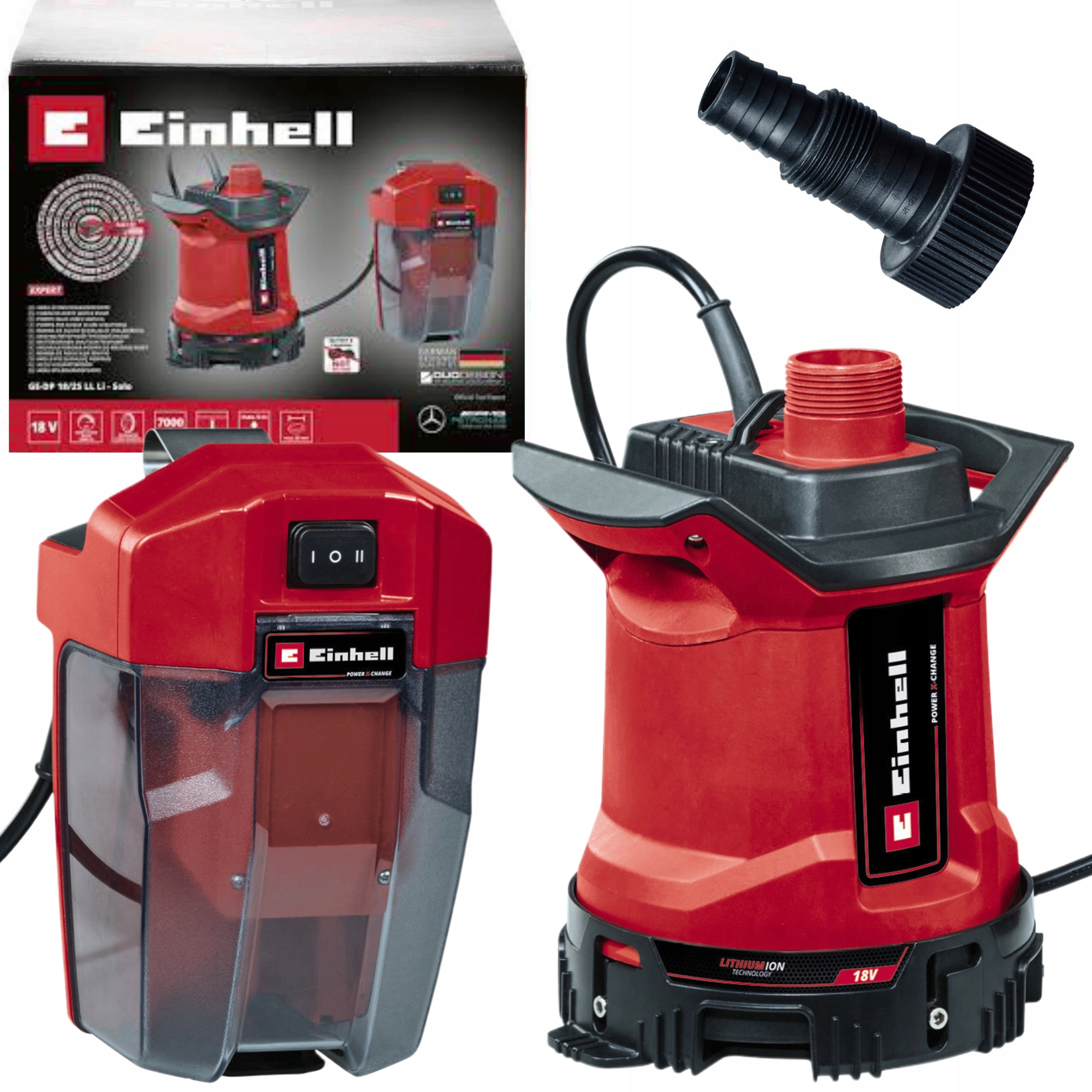 Pompa do czystej i brudnej wody GE-SP 18/25 LL Li Solo marki Einhell Power X-Change dostarczany jest bez akumulatora i ładowarki. Pasują do niego wszystkie akumulatory z serii Power X-Change .