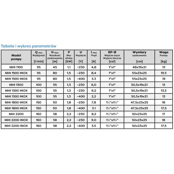 ZASTOSOWANIE: Wielostopniowa pompa MHI 1300 INOX z osprzętem ze względu na uzyskiwane wysokie parametry hydrauliczne przeznaczona jest do zaopatrywania w wodę pod ciśnieniem budynków mieszkalnych, domów jedno i wielorodzinnych, małych gospodarstw rolnych oraz podnoszenia ciśnienia w instalacji. Z powodzeniem mogą być również stosowane w zakładach przemysłowych systemach nawodnienia i procesach technologicznych. W połączeniu ze zbiornikiem przeponowym (optymalnie 50 do 300 litrów) tworzy kompletny zestaw hydroforowy. MH 1300 jest pompą samozasysającą, w przypadku pierwszego uruchomienia wystarczy zalać wodą korpus a pompa sama wytworzy podciśnienie ułatwiające zassanie wody pod warunkiem, że lustro wody w źródle znajduje się na głębokości nie niższej niż 8m od miejsca posadowienia pompy