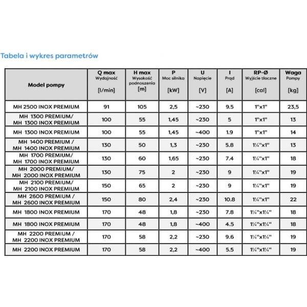 - Wysokość podnoszenia maksymalna [m] 80