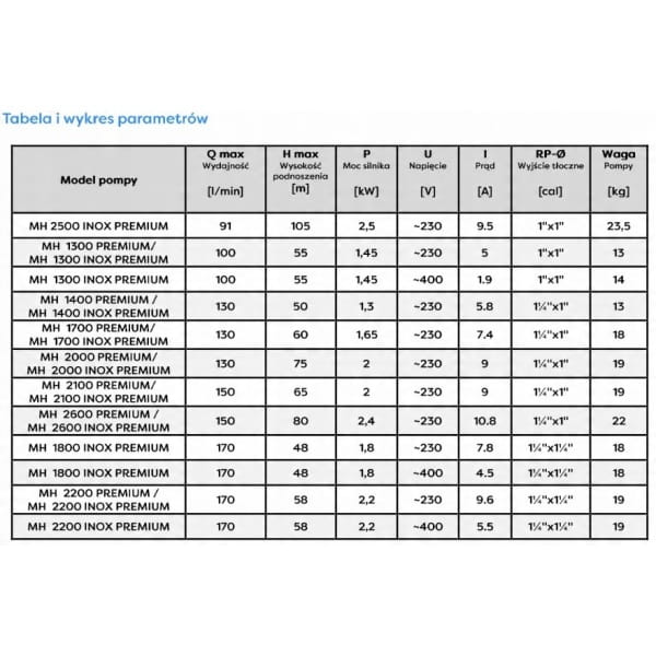 - Wysokość podnoszenia maksymalna [m] 75