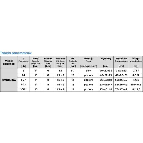 OMNIGENA ZBIORNIK 100L 1" POZIOM