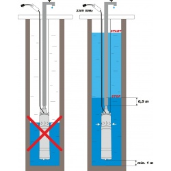 Wszystkie pompy zatapialne są chłodzone cieczą którą pompują nie mają wentylatorów aby się wychładzać. Jeśli pompa jest zanurzona np. w 1/3 swojej wysokości nie ma gdzie oddać ciepła z pracy silnika i może dojść do przegrzania . Jeżeli zdarzy Nam się przypadek że pompa zostanie wyłączona przez wyłącznik termiczny należy sprawdzić i usunąć przyczynę aby nie doprowadzić do przegrzania izolacji uzwojenia.