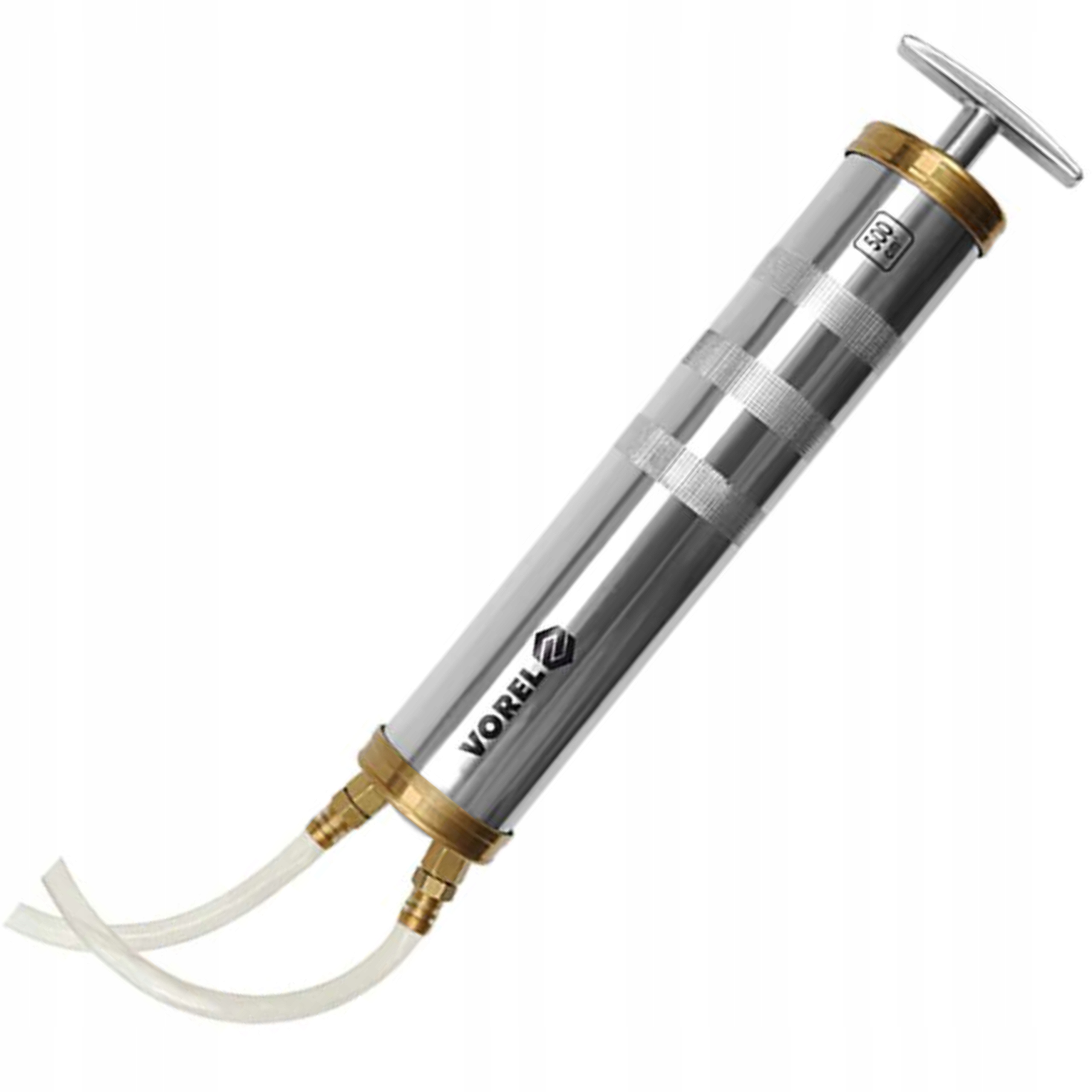 Pompka ręczna do oleju 500 ml. Przeznaczona do dolewania lub wysysania oleju ze zbiorników zewnętrznych lub zbiorników w maszynach i urządzeniach.