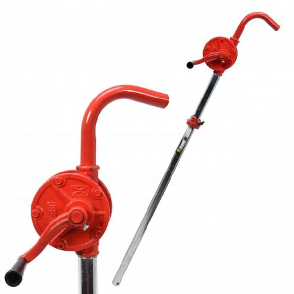 Pompa do tłoczenia oleju z beczki. Posiada zębaty, rotacyjny mechanizm tłoczący. Dane techniczne: Maksymalna wydajność: 19 l/min Maksymalna wysokość podnoszenia: 5 m Maksymalna głębokość podnoszenia: 1,5 m Pompa służy do przepompowywania cieczy takich jak: oleje lub smary płynne, z beczek do mniejszych pojemników. W celu zastosowania pompy należy ją zamocować w otworze beczki tak, aby umożliwić swobodny obrót korby. W tym celu w gwint otworu wlewowego beczki należy wkręcić pierścień mocujący, następnie przełożyć przez niego rurę pompy i zablokować ją śrubą umieszczoną w pierścieniu. Pod otwór wyjściowy pompy podstawić pojemnik i rozpocząć pompowanie, kręcąc korbą. Po zakończonej pracy wyciągnąć pompę z beczki, wykonać jeszcze kilka obrotów w celu opróżnienia pompy z resztek oleju.