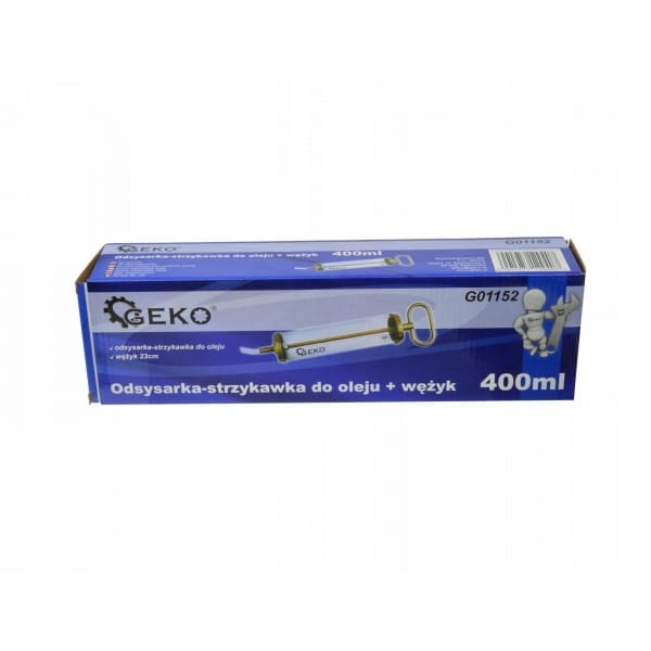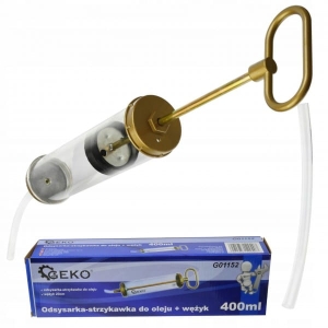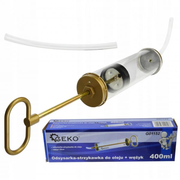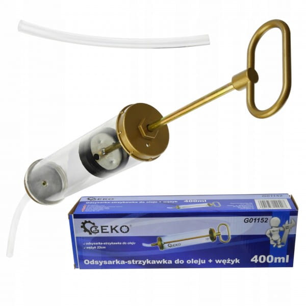 Ręczna strzykawka do oleju o pojemności 400ml. Służy do wstrzykiwania bądź odsysania oleju z cieżko dostępnych miejsc tj. skrzynia biegów, mostów napędowych itp.