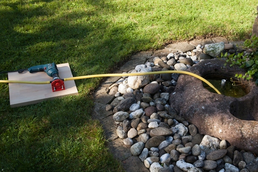 W łatwy sposób podłączamy 2 węże ogrodowe do przyłączy o średnicy 13 mm. Uruchamiamy pompę na niskich obrotach, następnie zwiększamy obroty do maks. 2800 obr./min.
