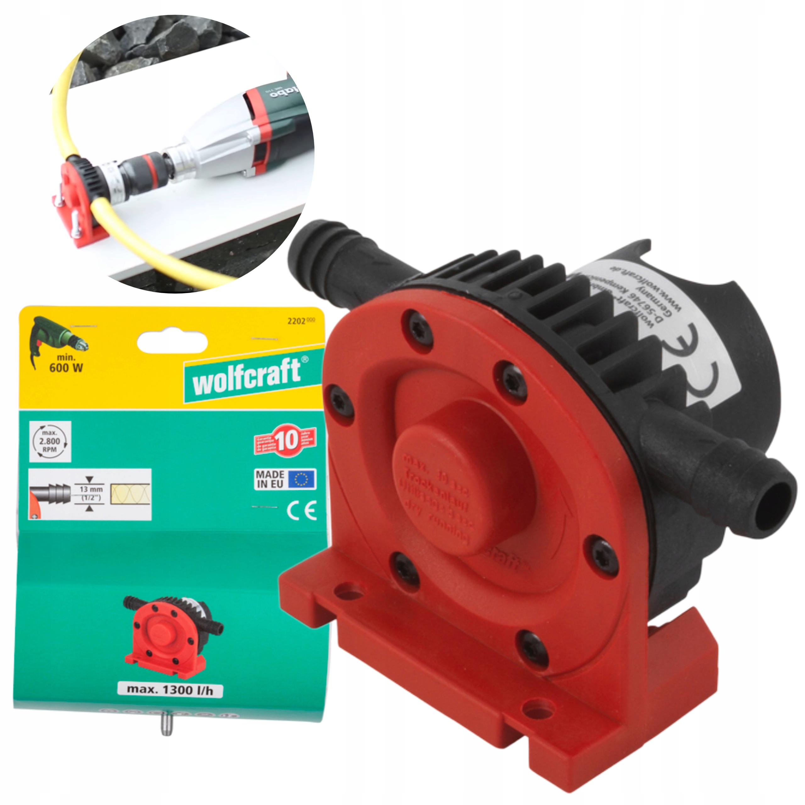 - Kompaktowa i samozasysająca pompa z obudową z tworzywa firmy wolfcraft jest idealna do szybkiego i łatwego przepompowywania cieczy. Doskonale nadaje się do opróżniania łóżek wodnych czy beczek na deszczówkę. Pompa do wody współpracuje z dostępnymi w handlu wiertarkami o mocy co najmniej 600 W. Dzięki lekkiej obudowie z tworzywa oraz dużej wydajności ta uniwersalna pompa jest trwałym, niezawodnym pomocnikiem i kompaktową, poręczną alternatywą dla dużych pomp ogrodowych.