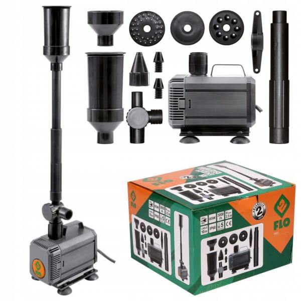 Pompa fontannowa marki FLO. Przeznaczona do pompowania wody czystej. Pompa ma zastosowanie w oczkach wodnych, figurkach ogrodowych oraz fontannach. Wyposażona w specjalny, rozbieralny do czyszczenia, filtr chroniący przed przedostaniem się zabrudzeń do środka. Wraz z pompą dołączony jest zestaw 5 końcówek z możliwością różnej konfiguracji, pozwalający na uzyskanie szeregu ciekawych efektów strumienia wody. Pompa fontannowa Końcówki (5 szt.) Instrukcja obsługi Karta gwarancyjna