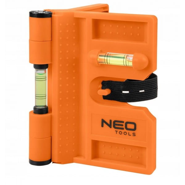 Poziomnica do słupków, ruchoma 71-003 marki NEO posiada 4 magnesy oraz 3 libelle. Umożliwia przeprowadzanie wymiarów słupków ogrodowych. Wykonana z trwałego tworzywa sztucznego, charakteryzuje się 209 mm długości roboczej. Jej zakres pracy to 15 – 180°. Poziomnica marki NEO jest ruchoma, dzięki czemu łatwo się składa i nie ulega szybko uszkodzeniom. Polecana dla majsterkowiczów i profesjonalistom.