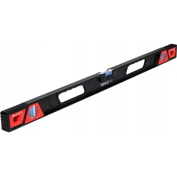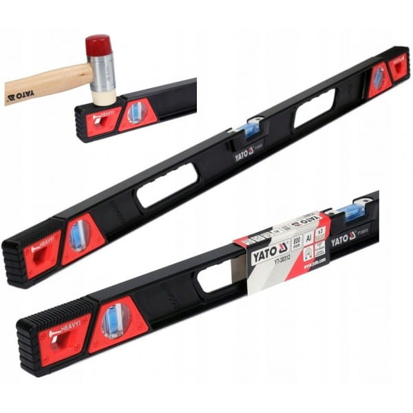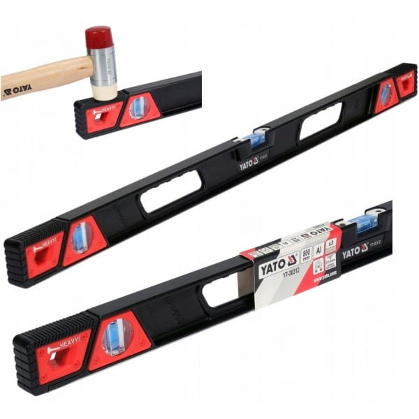 Wytrzymała, odporna na wstrząsy poziomnica aluminiowa YATO o długości 800 mm.