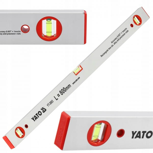 YATO POZIOMNICA ALUMINIOWA 3 LIBELKI LIBELLE 800 MM 0,8 M 1,5 MM YT-3003