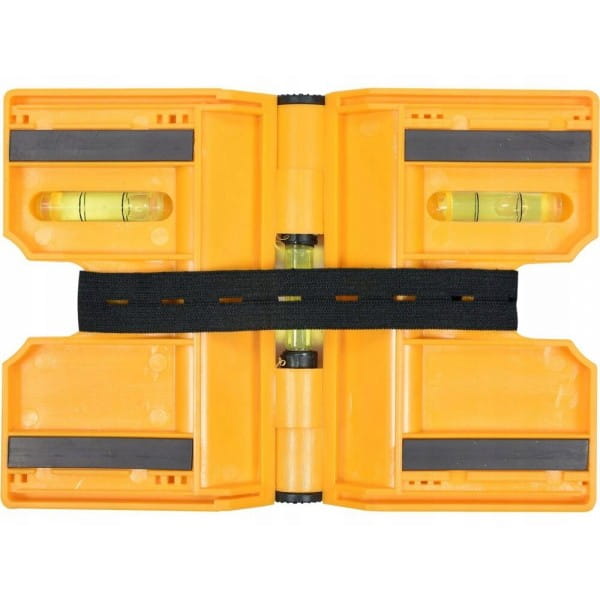 Mała składana poziomnica wykonana z tworzywa ABS. Przeznaczona do osadzania słupków z różnego materiału i precyzyjnego kontrolowania ich nachylenia. Posiada trzy tradycyjne libelle umożliwiające precyzyjne ustawienie badanych elementów konstrukcyjnych.