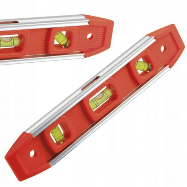 Poziomnica renomowanej marki Kraft&Dele KD10757 o długości 230 mm. Poziomica została wyposażona w 3 libelki, w tym poziom pionowy, poziom poziomy i poziom pod kątem 45 stopni. Korpus wykonany z tworzywa sztucznego o wysokiej jakości. Atutem poziomicy jest duży i mocny magnes umożliwiający łatwe przymocowanie do metalowych powierzchni. Sprawdzi się zarówno w profesjonalnym warsztacie jak i u majsterkowiczów.