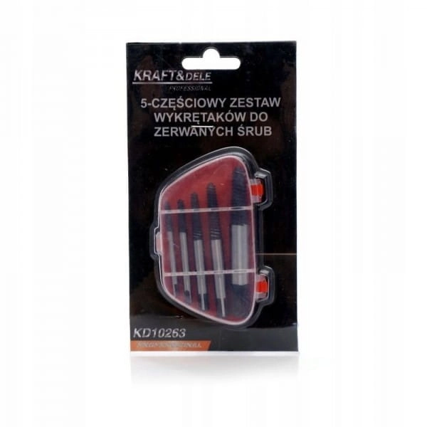 Profesjonalny zestaw wykrętaków do zerwanych śrub polskiej marki Kraft&Dele o oznaczeniu KD10263. Produkt stworzony z myślą o użytkownikach domowych, warsztatowych oraz zakładów pracy.