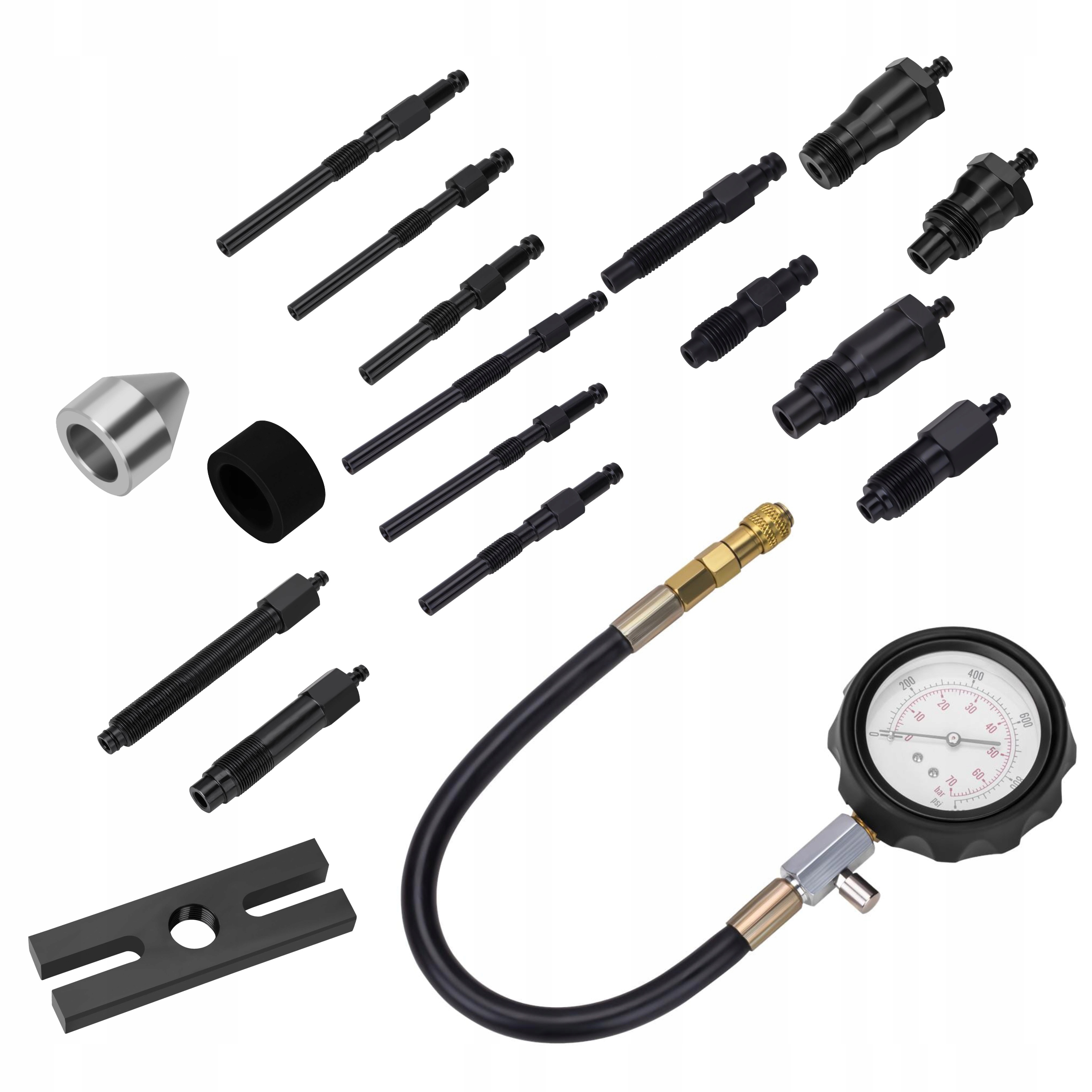 Próbnik przeznaczony jest do pomiaru ciśnienia sprężania w silnikach wysokoprężnych (Diesla). Zestaw zawiera miernik ciśnienia do 70 BAR (1000 PSI) z przewodem, szybkozłączem i zaworem zwalniającym, 4 adaptery montowane w miejscu wtryskiwacza, 9 adapterów montowanych w miejscu świecy żarowej, jeden adapter uniwersalny oraz mocowanie typ H dzięki czemu pasuje do większości marek samochodów: BMW, CITROEN, FIAT, FORD, ISUZU, LAND ROVER, MAZDA, MERCEDES, MITSUBISHI, NISSAN, OPEL, PEUGEOT, RENAULT, ROVER, SEAT, TOYOTA, VOLKSWAGEN.