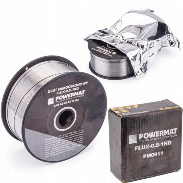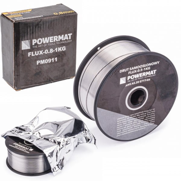 Drut proszkowy samoosłonowy fi 0,8 mm / 1 kg E71T-GS firmy Powermat przeznaczony jest do spawania stali węglowych zwykłej i podwyższonej wytrzymałości nie przekraczającej 510 MPa.