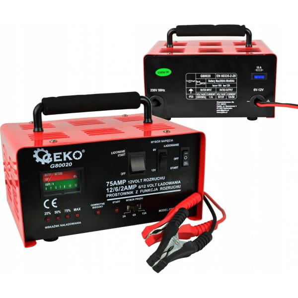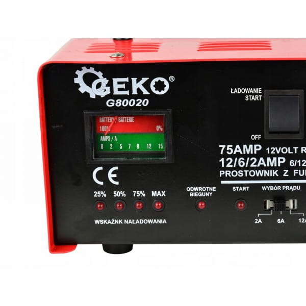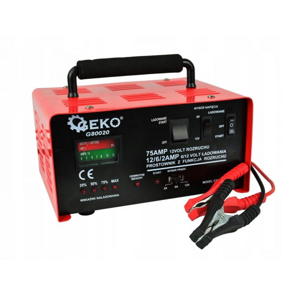 GEKO PROSTOWNIK ŁADOWARKA SAMOCHODOWA ROZRUCH DO KLEMY 75A 6V / 12V G80020