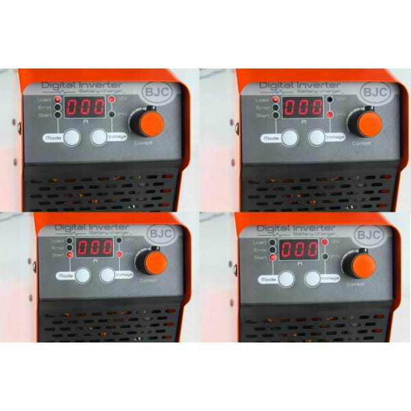 Prostownik inwerterowy BJC został wyposażony w niezwykle prosty i przejrzysty panel sterowania z wyświetlaczem LED, diodami sygnalizacyjnymi i potencjometrem.