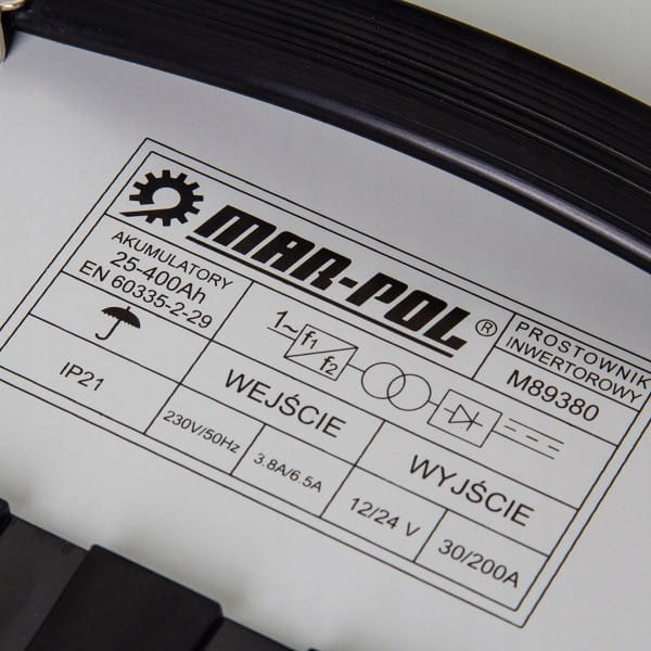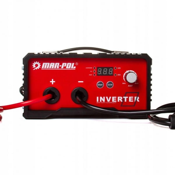 Prostownik inwerterowy MAR-POL® zapewnia możliwość skutecznego i efektywnego ładowania i rozruchu akumulatorów zarówno 12V jak i 24V.