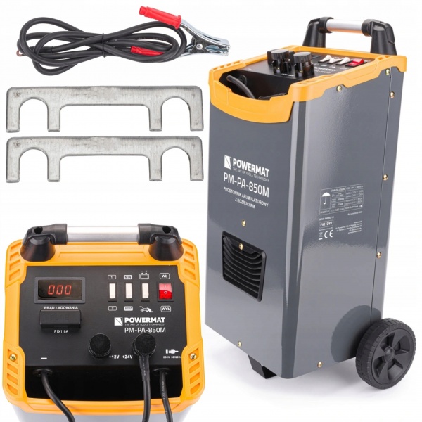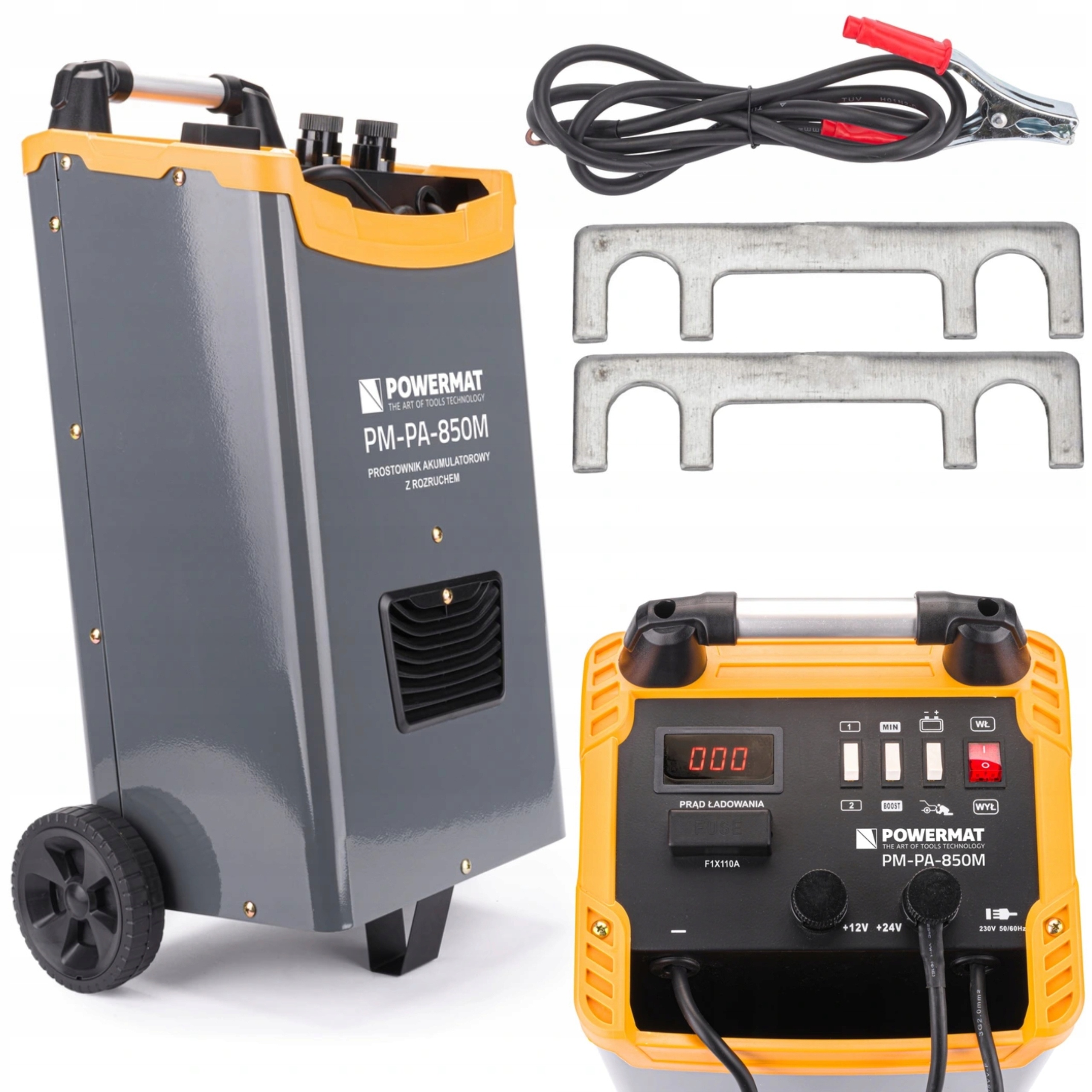 Wysokiej jakości automatyczny i precyzyjny prostownik akumulatorowy z rozruchem POWERMAT PM-PA-850M. Świetnie sprawdza się w profesjonalnych serwisach i warsztatach samochodowych jak i w przydomowych garażach. Urządzenie może ładować prądem o napięciu 12V i 24V.