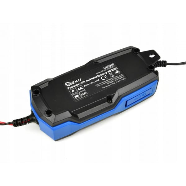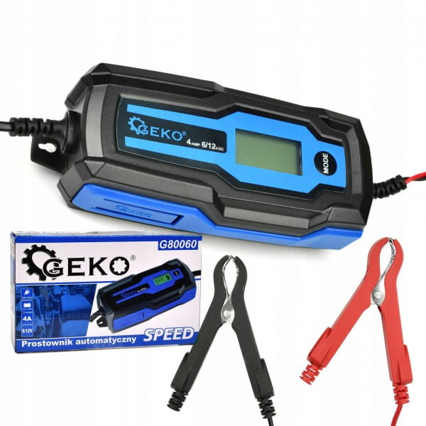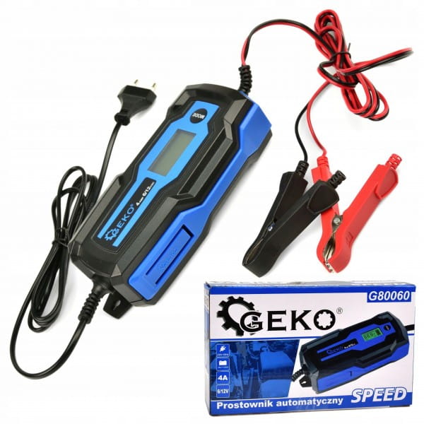 Automatyczny prostownik 4A (ładowarka). Urządzenie przeznaczone do ładowania akumulatorów AGM, GEL, kwasowych 6V/12V oraz litowo żelazowych (tylko 12V) o pojemności od 4Ah do 120Ah. Urządzenie posiada czytelny wyświetlacz LCD oraz wbudowany woltomierz. Ładowarka dedykowana do akumulatorów stosowanych w samochodach, motocyklach, motorowerach, skuterach wodnych, a także jachtach.