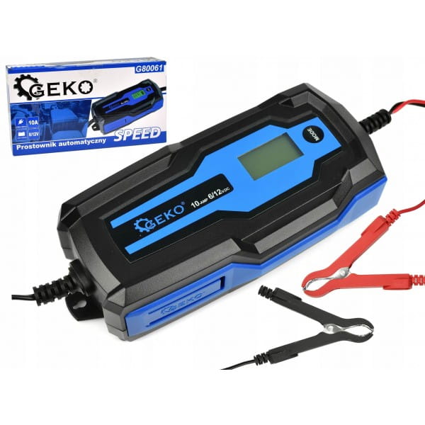 Automatyczny prostownik 4A (ładowarka). Urządzenie przeznaczone do ładowania akumulatorów AGM, GEL, kwasowych 6V/12V oraz litowo żelazowych (tylko 12V) o pojemności od 4Ah do 200Ah. Urządzenie posiada czytelny wyświetlacz LCD oraz wbudowany woltomierz. Ładowarka dedykowana do akumulatorów stosowanych w samochodach, motocyklach, motorowerach, skuterach wodnych, a także jachtach.
