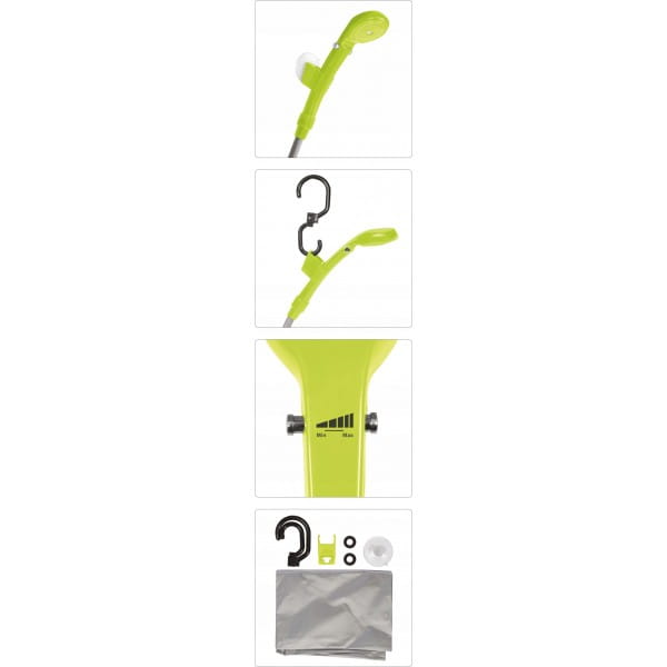 - Zawartość zestawu prysznic turystyczny|hak do zawieszenia|worek na wodę|przyssawka z uchwytem na słuchawkę|uszczelka x2