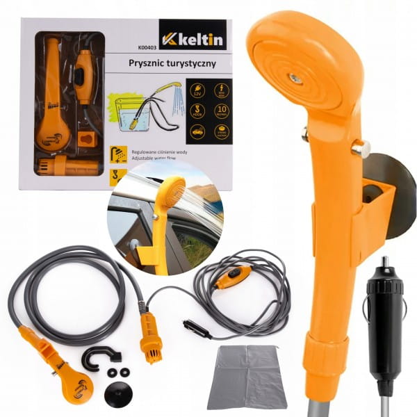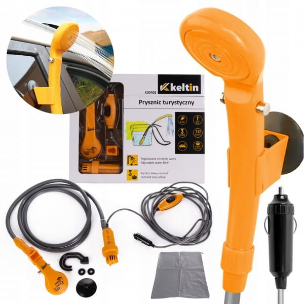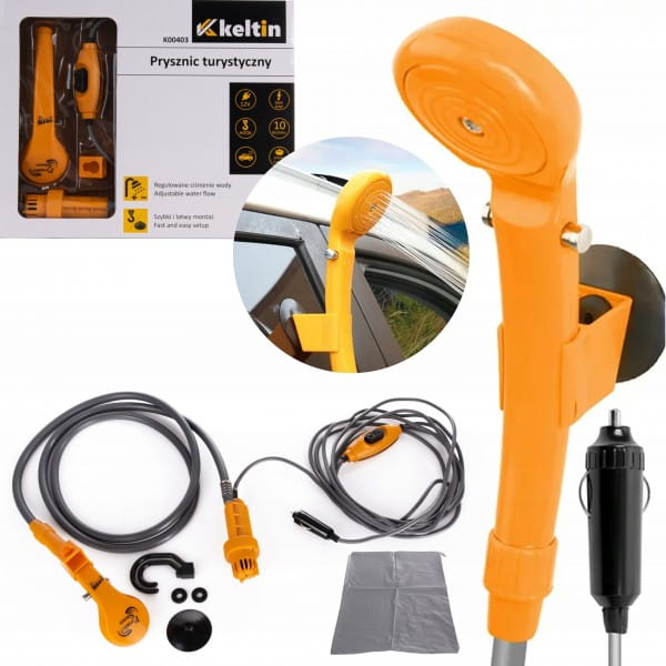 Prysznic turystyczny 12V 10l/min to przenośne urządzenie, które umożliwia prysznicowanie w dowolnym miejscu, korzystając z zasilania samochodowego. Jest idealny do używania podczas podróży, kempingu, wędrówek lub plażowania.