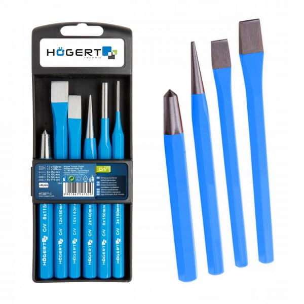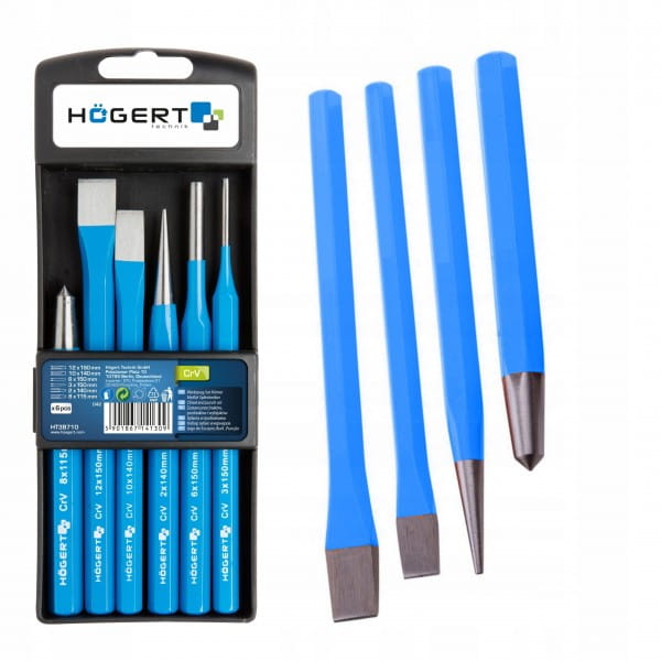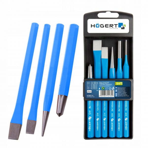 HOGERT ZESTAW KOMPLET PRZECINAKÓW, PUNKTAKÓW WYBIJAKÓW STALOWE 6 EL HT3B710