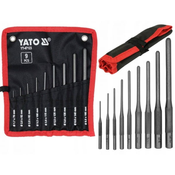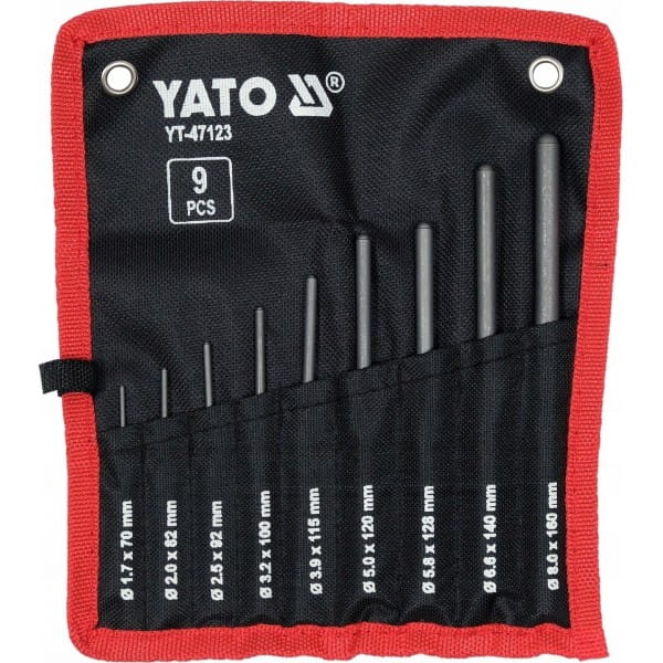 Zestaw 9 wybijaków równoległych o zaokrąglonych końcówkach YATO.