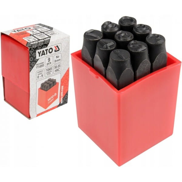 Znakowanie odbywa się przez przystawienie cyfrą do materiału i silnym uderzeniem młotkiem w przeciwny koniec stempla. Zestaw zebrany w plastikowym pojemniku, zawiera następujące cyfry: 0, 1, 2, 3, 4, 5, 6, 7 i 8 mm. Cyfrę 9 uzyskujemy odbijając odwrotnie ustawioną cyfrę 6.