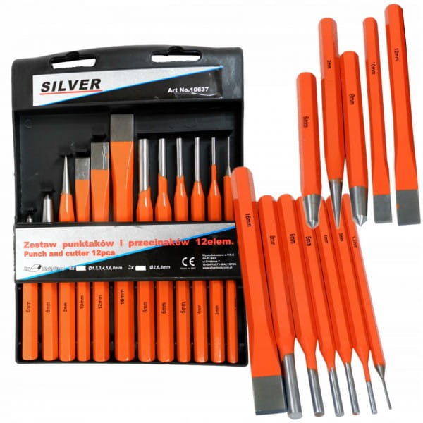 ZESTAW WYBIJAKÓW WYBIJAKI PRZECINAKI 12 SZT