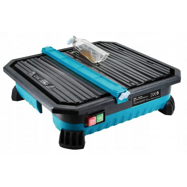 Konstrukcja przypominającą klasyczne stolikowe przecinarki do glazury pozwala na cięcie na mokro tarczami diamentowymi o średnicy 110mmx22,2mm. To co wyróżnia tą przecinarkę to brak konieczności podłączenia do sieci elektrycznej, co jest duży atutem zwłaszcza dla ekip wykończeniowych lub osób, które nie mają warunków do cięcia wewnątrz pomieszczeń. Silnik zasilany baterią z systemu jednej baterii osiąga maksymalnie 3800RPM, co pozwala na efektywne cięcie płytek do 24mm grubości pod kątem 90° lub 16mm pod kątem 45°. Wbudowana tacka/zbiornik na wodę zapewnia, że podczas cięcia nie wytworzymy chmury pyłów jak w przypadku cięcia zwykłą szlifierką kątową.