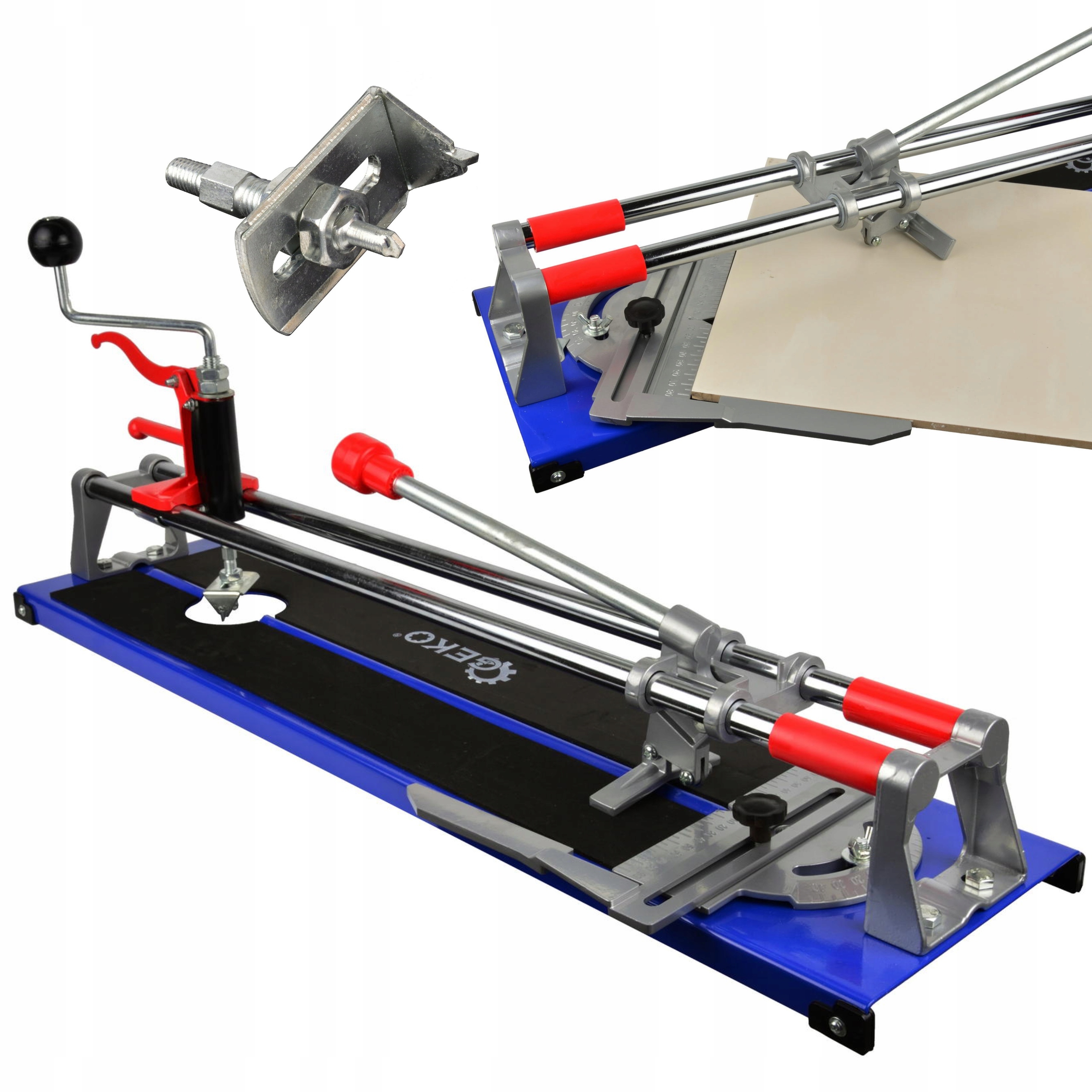 Przyrząd do cięcia glazury o długości powierzchni roboczej 600 mm. Wytrzymałe ostrze z węglika wolframu. Stabilna podwójna szyna z mechanizmem tnącym, który zapewnia precyzyjne cięcie płytek o grubości do 12 mm. Metalowa linijka pozwala na dokładny pomiar cięcia i ustawienie kąta cięcią w przedziale od 0 do 45°. Stalowa podstawa z gumowymi nakładkami zapewnia stabilność urządzenia w czasie pracy. Na prowadnicach dodatkowo zamontowany został wykrojnik umożliwiający łatwe wycinanie w płytce otworów o średnicy od 30 do 80 mm