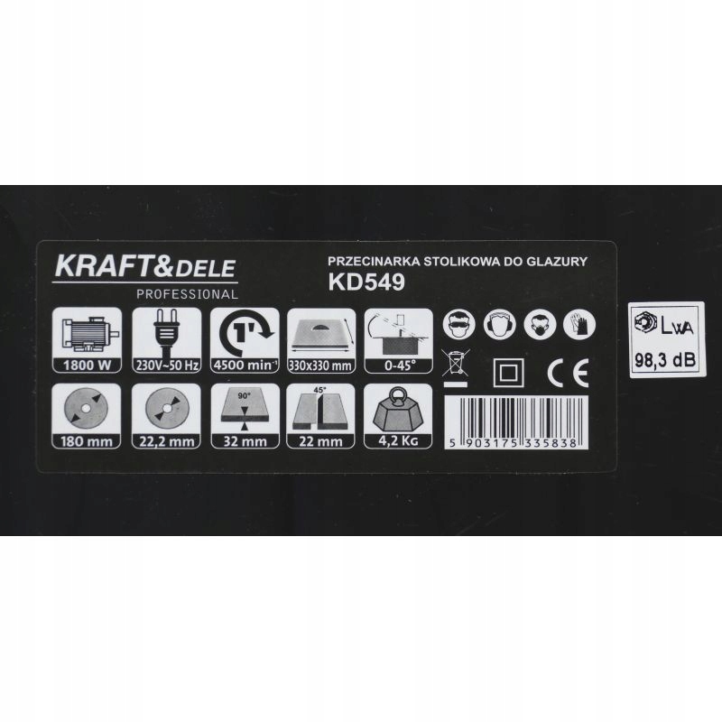 Przecinarka do płytek Kraft&Dele model KD549 to rewelacyjna maszyna do precyzyjnego cięcia każdego rodzaju płytek. Wyposażona w diamentową tarczę i pojemnik na wodę do chłodzenia tarczy. Zastosowany w urządzeniu system pracy na mokro z użyciem wody pozwala na prawie bezpyłową pracę. Dzięki urządzeniu można przycinać płytki w standardzie, pod kątem (na płasko) jak i również w "karo". Stół jest ze stali ocynkowanej. Idealna do wszelkiego rodzaju desek i płyt wiórowych.