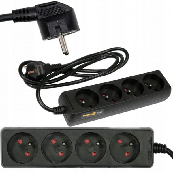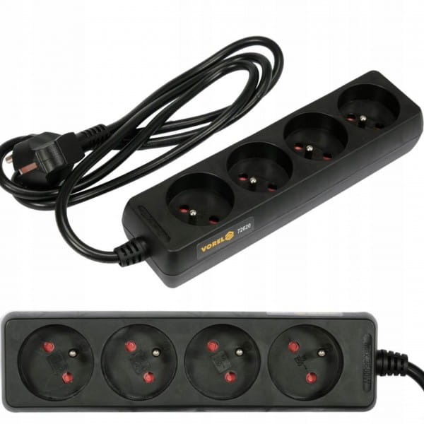 PRZEDŁUŻACZ 4 GNIAZDA Z UZIEMIENIEM, 1,5M VOREL