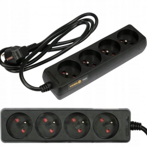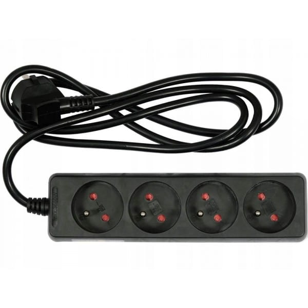 Klasyczny przedłużacz w wersji z uziemieniem. Obudowa gniazd z tworzywa sztucznego. Kolor czarny.