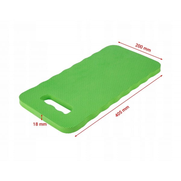 Mata pod kolana, pianka EVA 97H200 VERTO to przeznaczona do prac ogrodowych mata o wymiarach 40 x 20 x 2 cm i wadze zaledwie 95 g. Wykonana z miękkiej i lekkiej pianki EVA zapewnia kolanom odpowiednie oparcie podczas wykonywania długich, klęczących zadań. Mata chroni kolana przed twardym, zimnym oraz wilgotnym podłożem. Dodatkowo może być wykorzystywana jako uniwersalne siedzisko. Dzięki wyciętej rączce łatwo ją przenosić oraz przechowywać. Charakteryzuje się radosnym, zielonym kolorem. Przyda się zarówno podczas zadań w ogrodzie jak i przy pracach montażowych czy małych remontach.