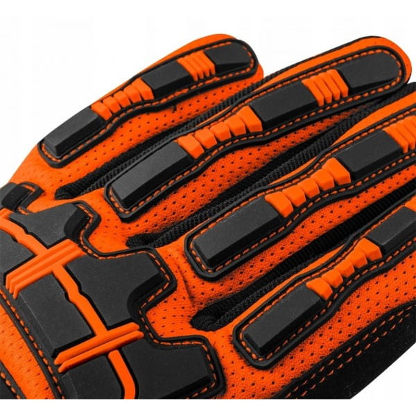 Rękawice robocze z magnesem, rozmiar 10" NEO (nr ref. GD013) posiadają magnes na grzbiecie dzięki któremu majsterkowicz ma pod ręką śruby, nakrętki i inne małe elementy w trakcie pracy. Palce oraz przeguby dłoni zabezpieczone zostały powłoką gumową działającą przeciwwstrząsowo oraz niwelującą otarcia. Rzep na nadgarstku pozwala na regulację obwodu. Rękawice spełniają warunki dla normy EN 388. Dostępne w rozmiarze 10”.