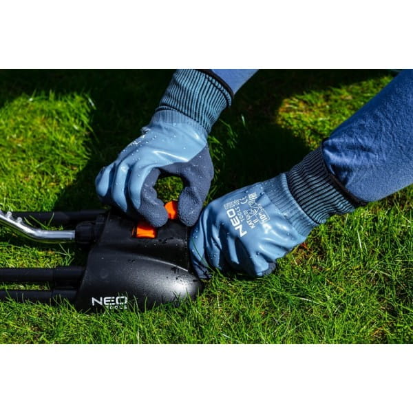 Rękawice robocze, poliester pokryty lateksem (2 warstwy), 3141X, 97-643 NEO to doskonałe zabezpieczenie dłoni podczas prac ogrodowych, majsterkowania, pracy zawodowej czy remontów. Uchronią ręce przed zabrudzeniami, zadrapaniami oraz drobnymi urazami. Wykonane zostały z wytrzymałego poliestru z dodatkowym pokryciem lateksowym oraz drugą warstwą na wewnętrznej stronie dłoni z lateksu spienionego. Rękawiczki charakteryzują się wysoką odpornością na: ścieranie, przecięcia ostrymi narzędziami, przekłucia oraz rozdzieranie. Dobrze dopasowują się do kształtu dłoni, a ich jakość potwierdzona jest zgodnością z certyfikatem CE oraz normą EN 388.