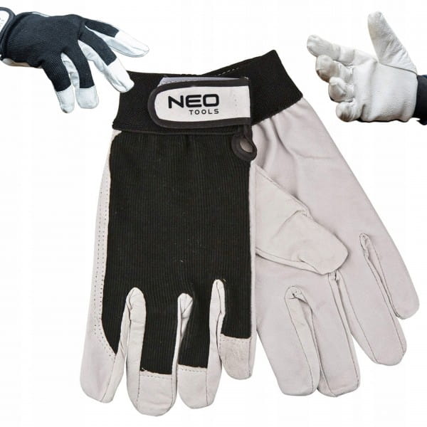 Rękawice robocze NEO (nr ref. 97-604) w rozmiarze 8”. Zapewniają ochronę dłoni przed brudem, zadrapaniami, odciskami i szkodliwymi warunkami podczas pracy. Wykonane z wysokiej jakości licowej skóry świńskiej. Wykazują dużą odporność na ścieranie. Zapewniają wygodę podczas użytkowania, jednocześnie zapobiegają wyślizgiwaniu się narzędzi z rąk. Oznaczenie CE to gwarancja bezpieczeństwa, dowodzi, że produkt spełnia wszystkie unijne wymagania. Marka NEO spełnia oczekiwania profesjonalistów.