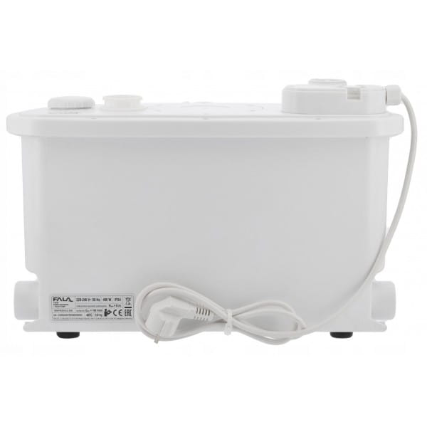 Wydajna pompa sanitarna z rozdrabniaczem wyposażona w cichy silnik o mocy 400 W. Pompa pracuje automatycznie sterowana włącznikiem pływakowym. Dodatkowo użytkownik może uruchomić pracę silnika ręcznie za pomocą przycisku. Okno rewizyjne umożliwia dostęp do pojemnika z pompą.
