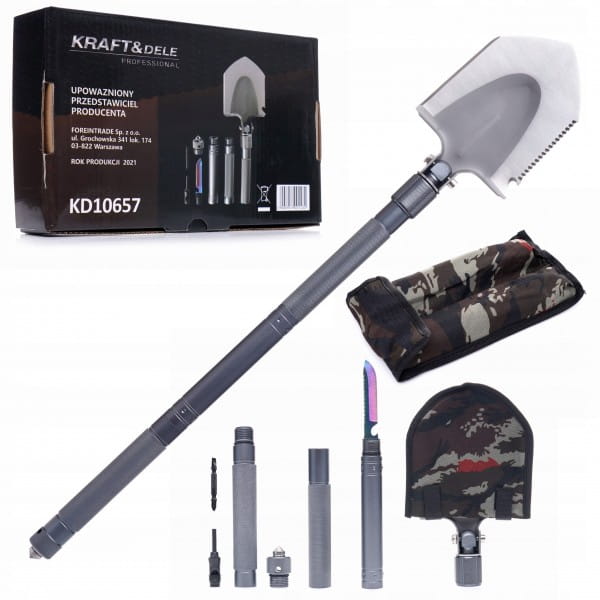 Wielofunkcyjna saperka survivalowa marki Kraft&Dele model KD10657 jest niezastąpiona podczas każdej wędrówki, na kemping, w ogrodzie, podczas wędrówek, na polowaniu, w podróżach i wyprawach na świeżym powietrzu i nie tylko! Produkt wykonany został ze stali nierdzewnej oraz najwyższej jakości aluminium.